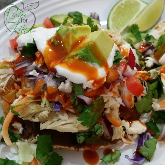 Time for tostadas!! This recipe goes back many years to when I was first working to lose the weight. After my family mutinied (who knew they wouldn’t like plain chicken with brown rice and steamed broccoli for every meal??), I began working on cleaning up familiar recipes that I knew they’d eat. This was one of the first. And it’s still a favorite. It’s gluten-free (check your ingredient labels to stay safe!), full of flavor, and because of the nature of the beast – you can load up those toppings until your plate resembles a food mountain – ‘cuz it’s all good for you and there’s no damage to the waistline.